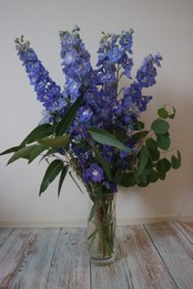 初夏に相応しい、涼しげで爽やかなデルフィニウムをグリーンとともに束ねました。