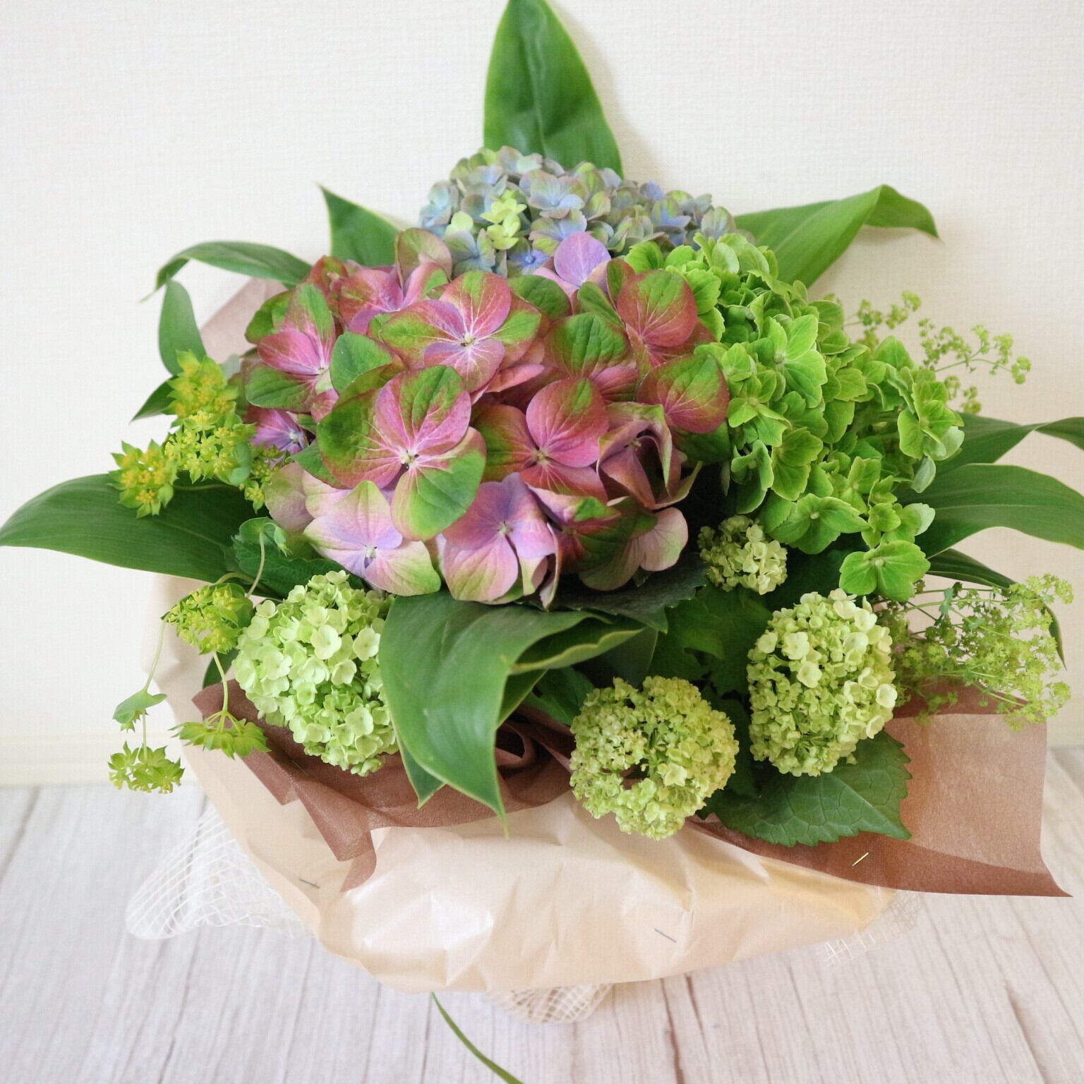 【千葉県産】3色のアジサイのブーケ